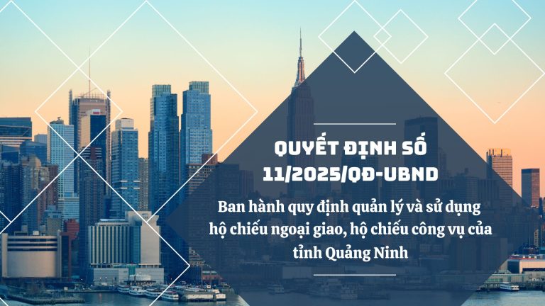Ngày 27/2/2025, UBND tỉnh ban hành Quyết định số 11/2025/QĐ-UBND về việc ban hành quy định quản lý và sử dụng hộ chiếu ngoại giao, hộ chiếu công vụ của tỉnh Quảng Ninh.