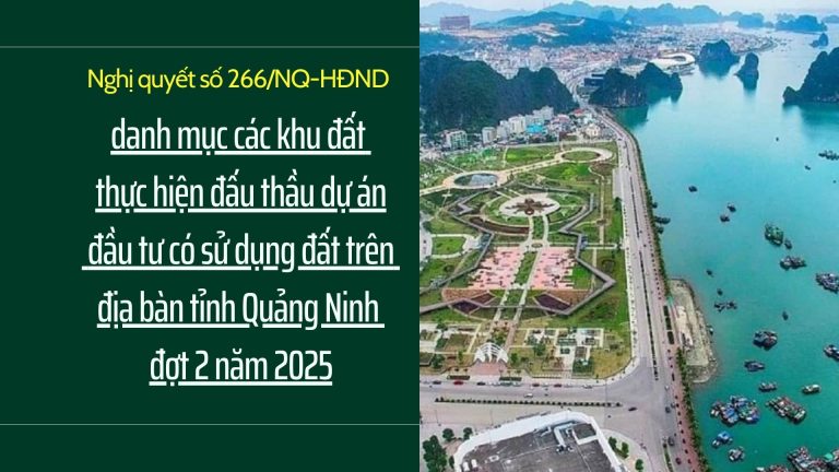 Ngày 28/4/2025, Hội đồng Nhân dân tỉnh Quảng Ninh kỳ họp thứ 26,khóa XIV, đã chính thức thông qua Nghị quyết số 266/NQ-HĐND, phê duyệt danh mục 18 khu đất để đấu thầu các dự án sử dụng đất đợt 2 năm 2025. Đây là bước đi chiến lược nhằm tối ưu hóa nguồn lực đất đai, thu hút đầu tư và thúc đẩy phát triển kinh tế – xã hội bền vững của tỉnh.