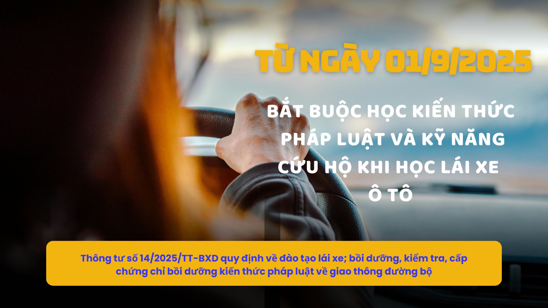 Ngày 30/6/2025, Bộ trưởng Bộ Xây dựng đã ban hành Thông tư số 14/2025/TT-BXD quy định về đào tạo lái xe; bồi dưỡng, kiểm tra, cấp chứng chỉ bồi dưỡng kiến thức pháp luật về giao thông đường bộ. Thông tư có hiệu lực từ ngày 01/9/2025, thay thế các quy định cũ trước đó, đồng thời ban hành kèm theo chương trình khung đào tạo lái xe ô tô mới nhất.